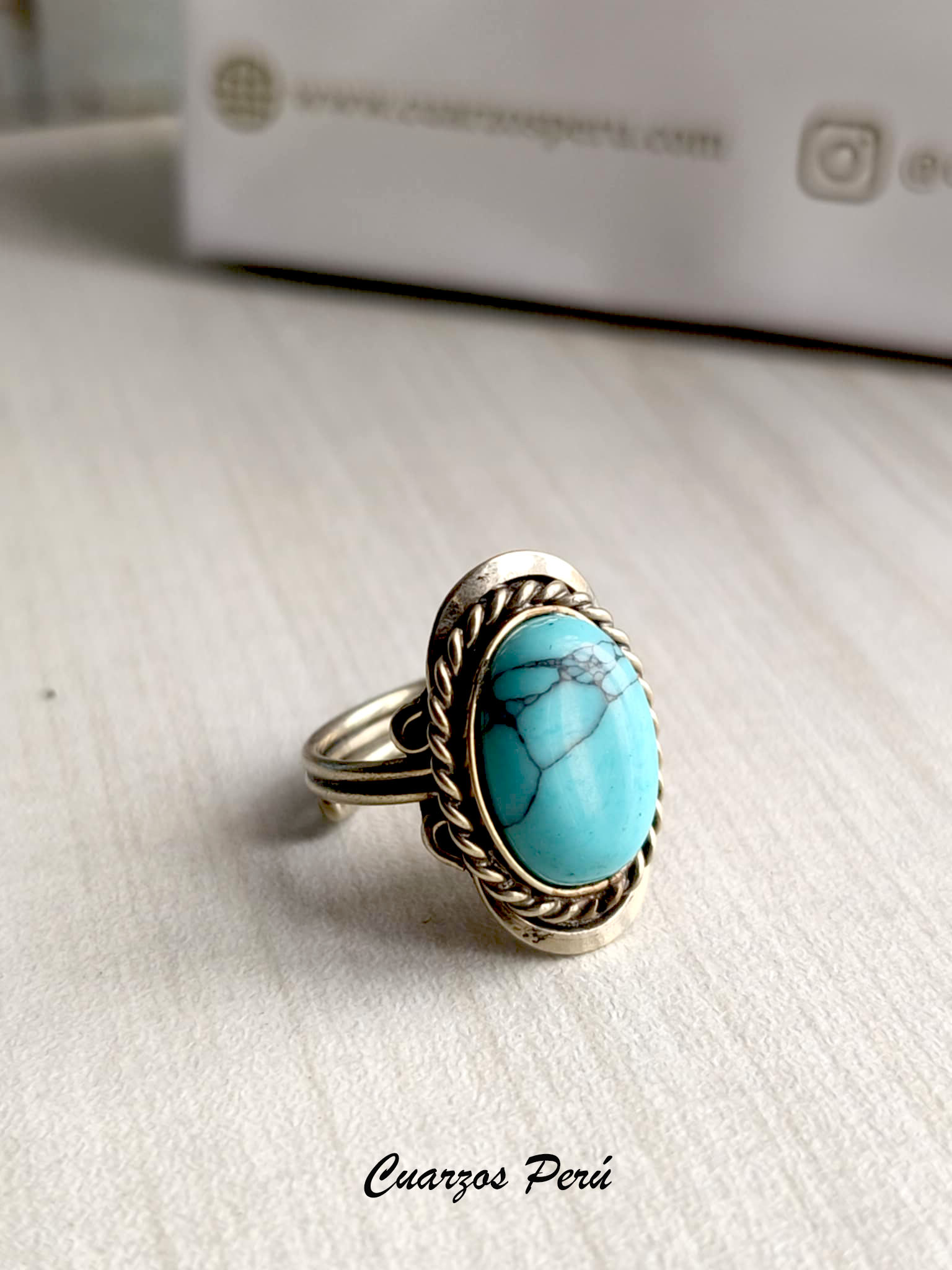 Home Anillos Anillo de Cuarzo Turquesa con Alambre de Alpaca Sortija de Cuarzo