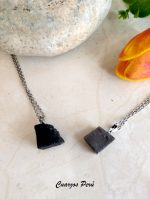 Collar de Roquita Obsidiana con cadena de acero plateada