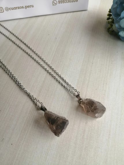Collar Roquita Citrino con cadena de acero inoxidable dorado