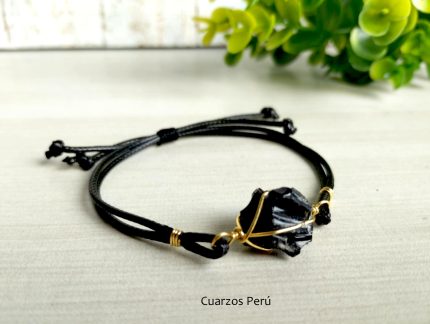 Pulsera de Turmalina Collar con hilo encerado dorado y alambre americano S/17.00