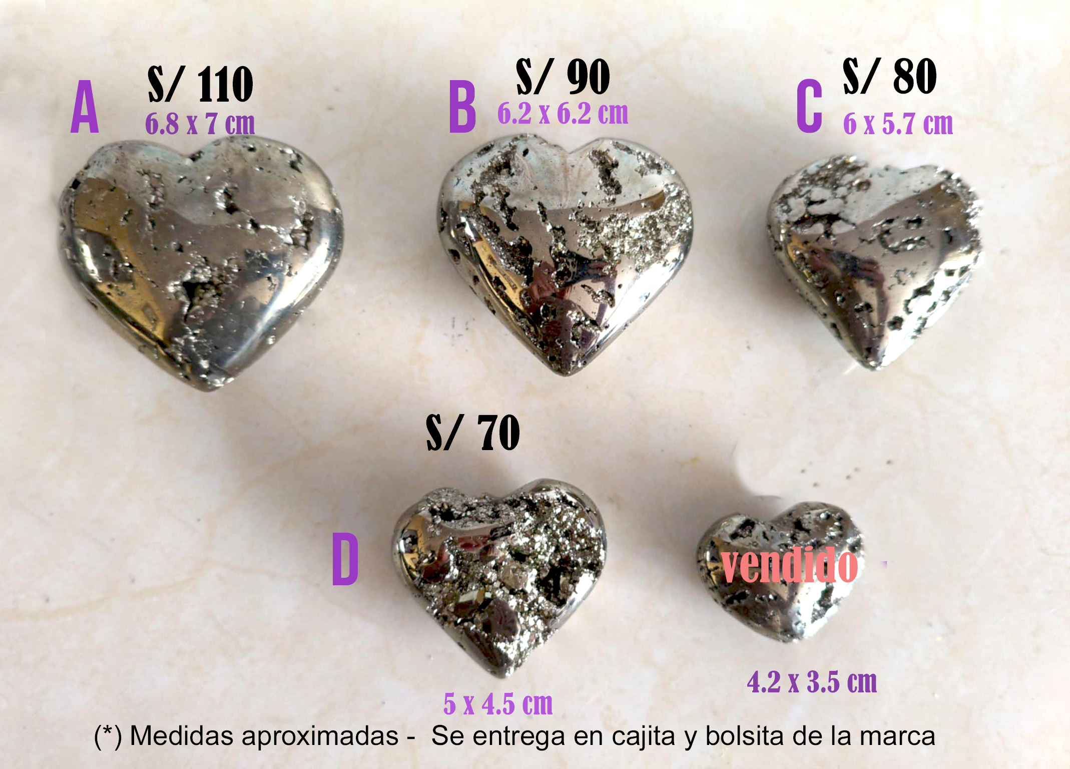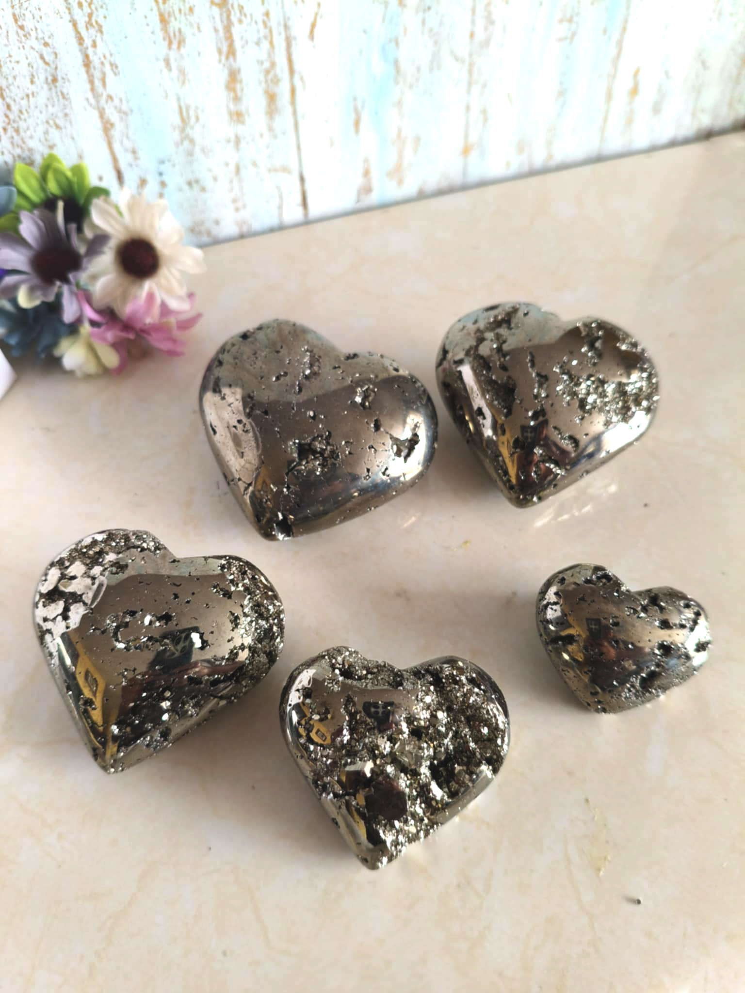 Corazón de Pirita en Varios Tamaños