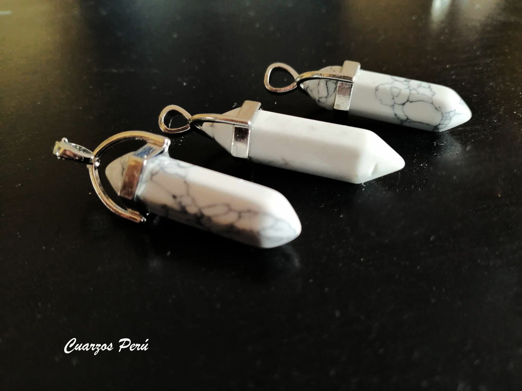 Categories: Collares, Hexagonales Tags: collar con pita negra, collar de cuarzo, collar de howlita blanca, collar hexagonal, howlita blanca
