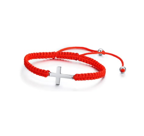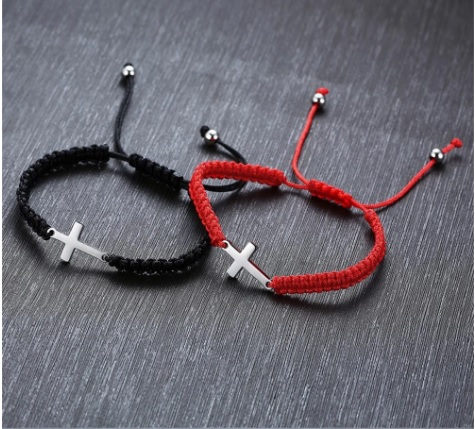 Pulseritas de hilo rojo o negro tejido con Cruz de acero inoxidable