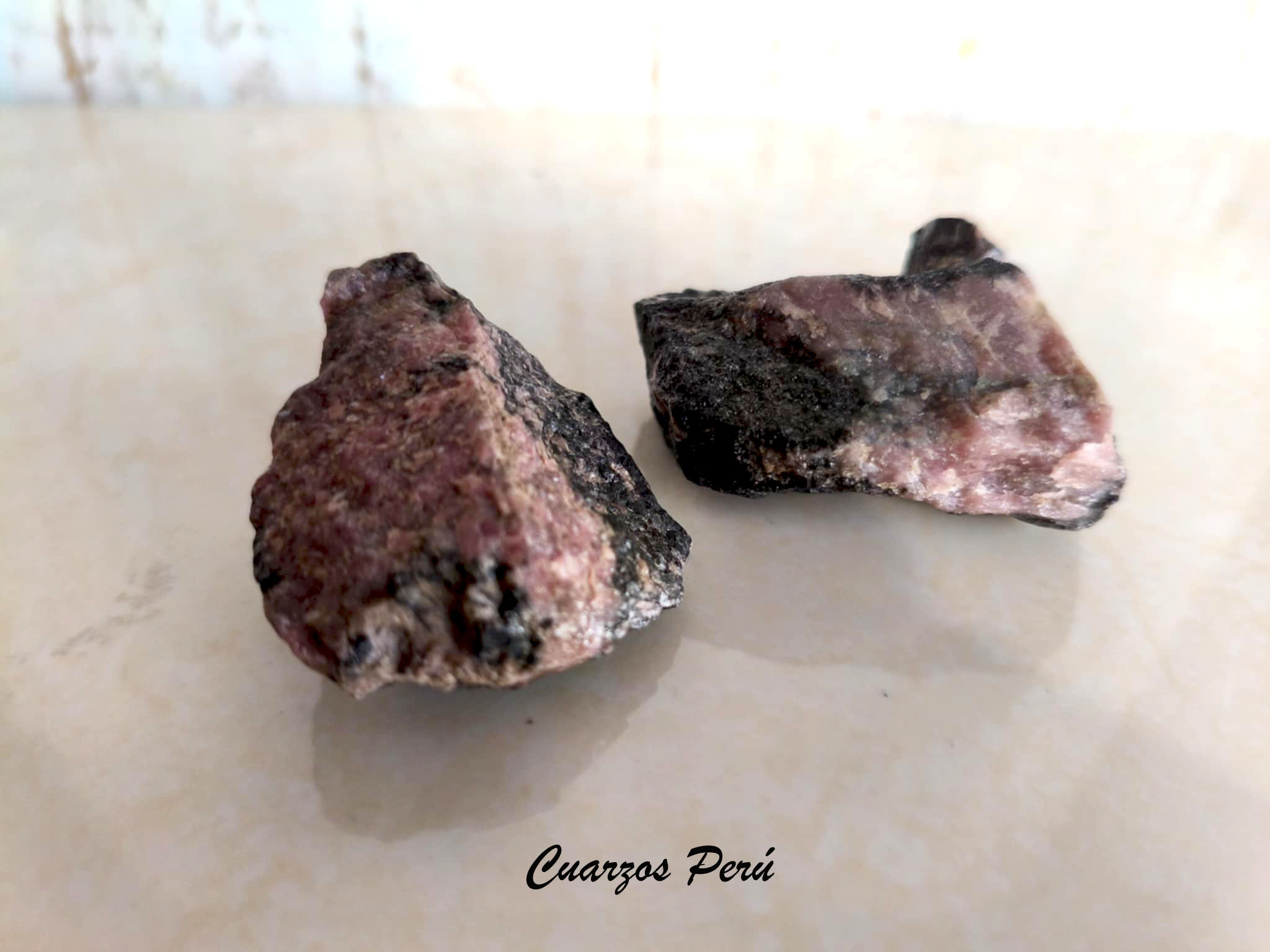 Roquita de rodonita natural de 4 cm aprox ( de un lado)